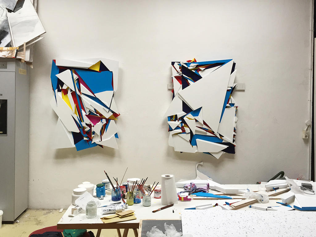 Black lines crossing intersections with vertical chrome, neon yellow, blue and red, extend into tight son. Graphic compositions superimposed like fragments of unstructured letters, this is the work of Boris Tellegen, alias Delta. The depth of his Art come from a graffiti background and studies in design architecture. He rips space and confronts the architecture to bring new perspectives. Delta has brought perspective and 3D in graffiti, mixing his work on letters with his engineering training.