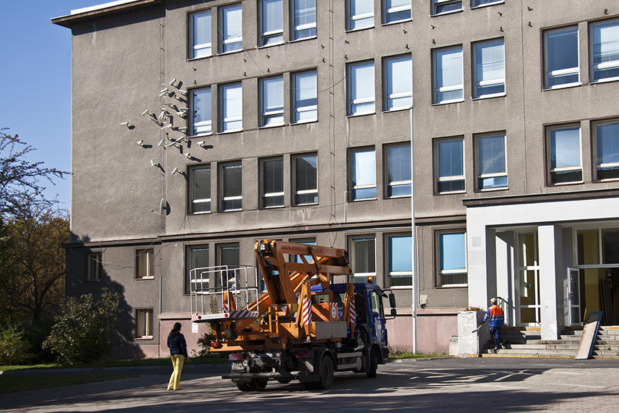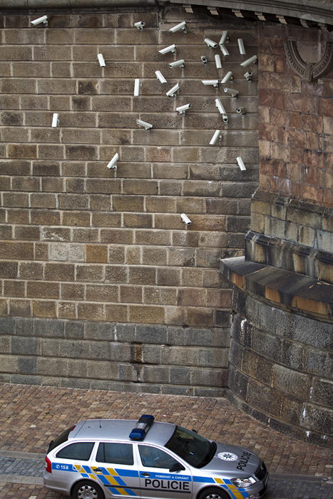 So obviously, when an artist like Jakub Geltner is playing around with surveillance cameras, satellite dishes and security equipment in unusual areas, we love it immediately! The installations of the Czech artist are actually quite subtle and draw attention to the presence of being watched and filmed all the time; a testimony to the fact that we are losing our freedom gradually. Living and working in Prague, Geltner created his first installation directly in the center of the city, perfectly assimilating into the surrounding architecture and design of the contemporary urban landscape.