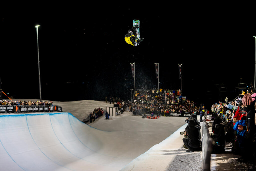 The halfpipe night finals at LAAX OPEN 2026 went fully off in front of a stacked crowd. Gaon Choi (KOR) and Scotty James (AUS) took top honors after throwing down absolute hammers under the lights.