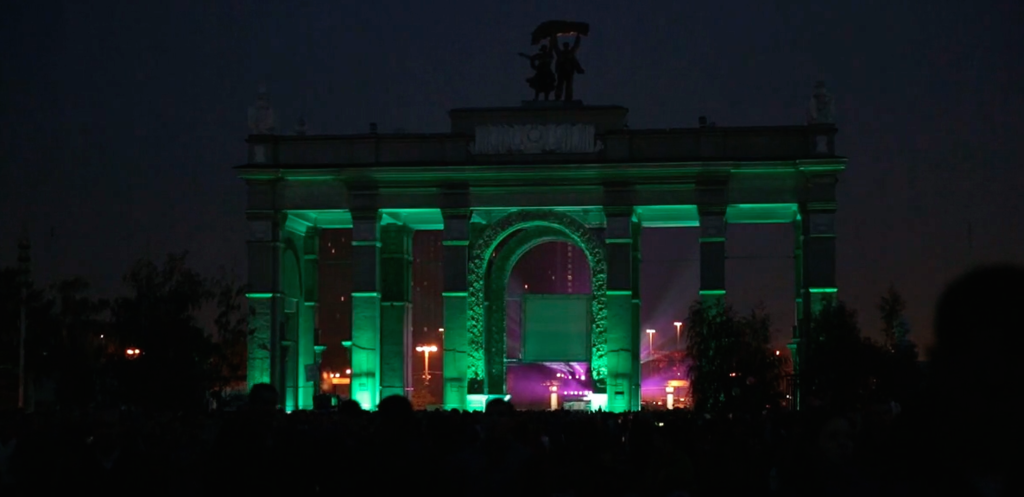 The goal was to symbolize the passing time, its evolution linked with the fact that it’s a Soviet building. Geometrical shapes, a mix of colours and blurred lines are giving a contemporary vivid life to this imposing concrete building.