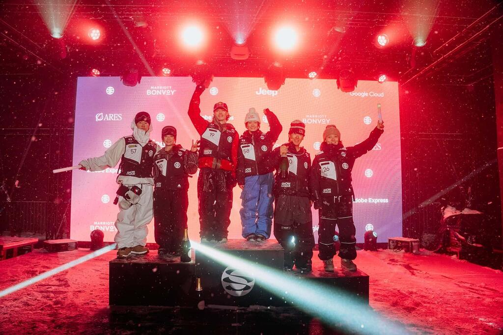 Superstar Eileen Gu shined with elegance, style, and technical skill at the first Snow League halfpipe night event, winning the freeski contest in LAAX and the title of the first Snow League World Champion in Halfpipe.
